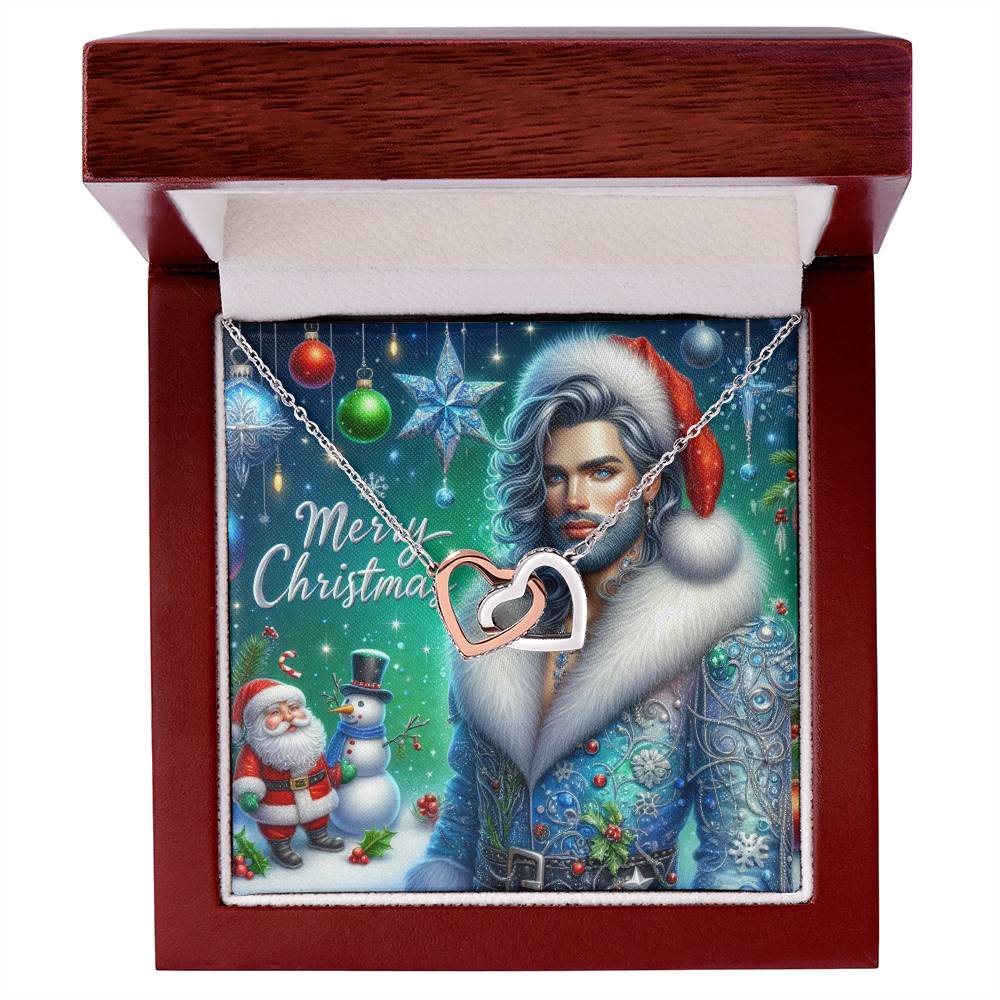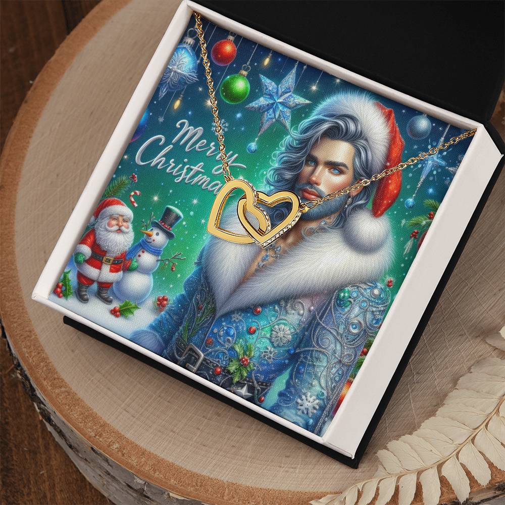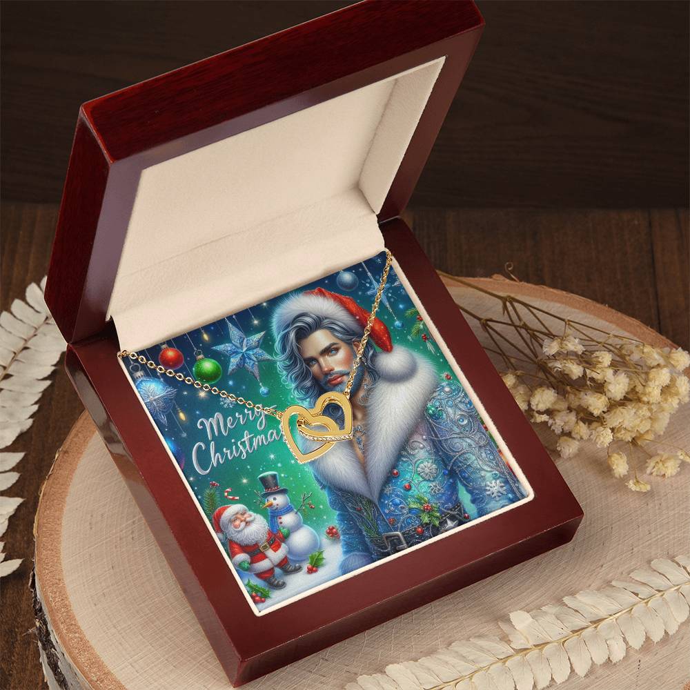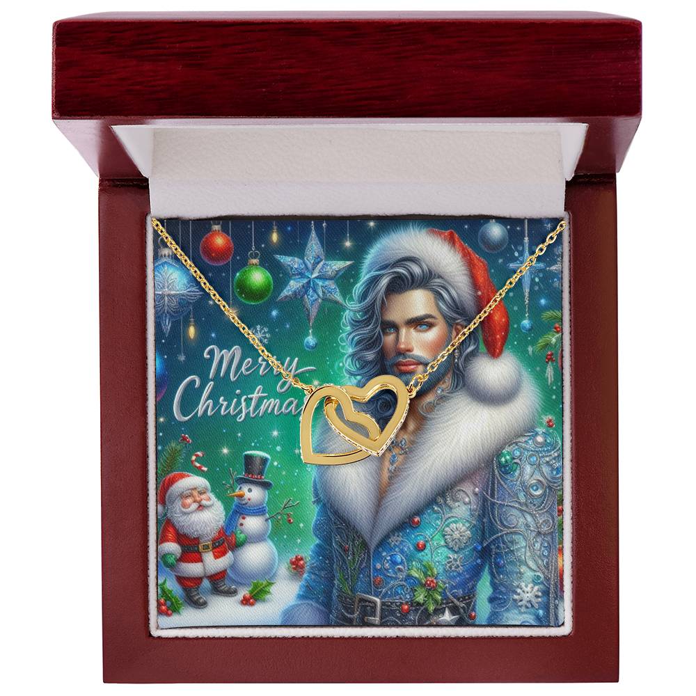 Interlocking Hearts Necklace Merry Christmas (Yellow & White Gold Variants)